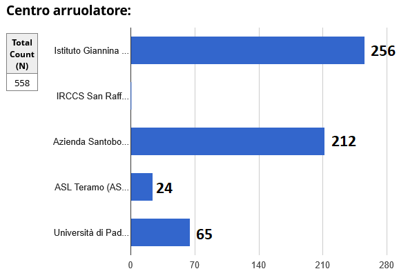 Al 29 ottobre sono 435 casi reclutati nell’ambito del progetto LIFEMap: 207 sono stati reclutati dall’Istituto Giannina Gaslini di Genova, 186 dall’AORN Santobono-Pausilipon di Napoli, 14 dall’Asl di Teramo e